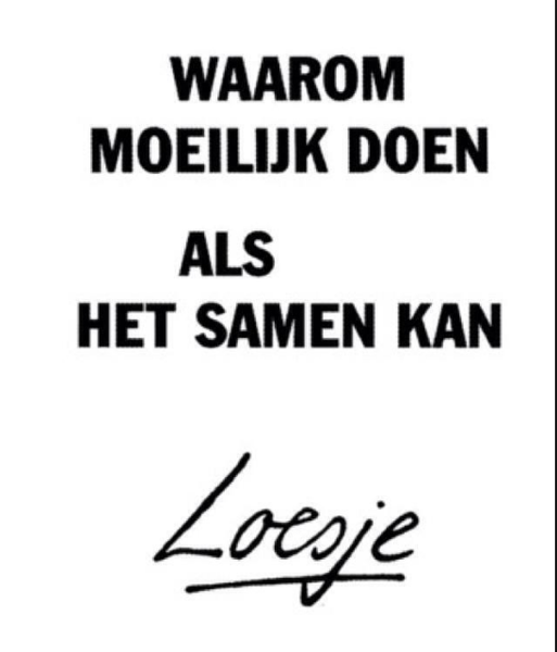 Kom op mensen! Alle middelen zijn voorhanden om samenwerking te laten slagen. En tóch beginnen we gewoon weer waar we gisteren zijn gestopt. Ben je je dan wel bewust van waar je mee bezig bent? Namelijk een fantastisch pand bouwen voor een vereniging waar kinderen weer naar hartenlust kunnen spelen. Of een thuis bouwen voor mensen die dat heel hard nodig hebben..